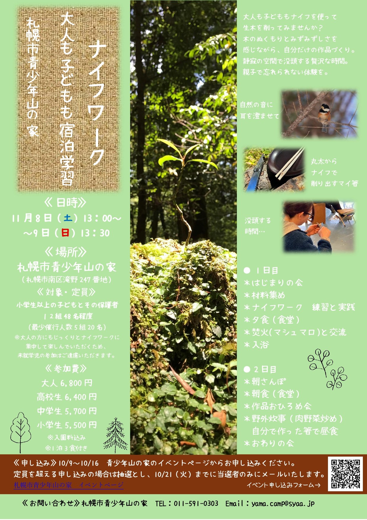 大人も子どもも宿泊学習~ナイフワーク~を11月8日(土)~9日(日)で開催いたします。